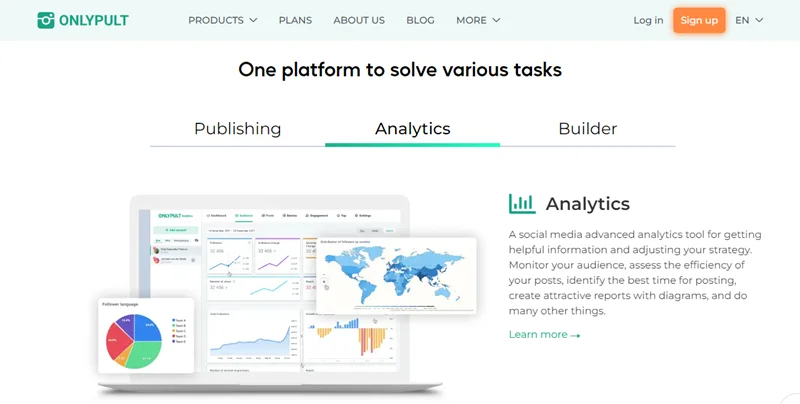 Onlypult is a comprehensive solution for businesses and individuals who want to streamline their social media marketing efforts. It helps you schedule posts, manage multiple accounts, and track your social media analytics across various platforms like Instagram, Facebook, and even blogs.