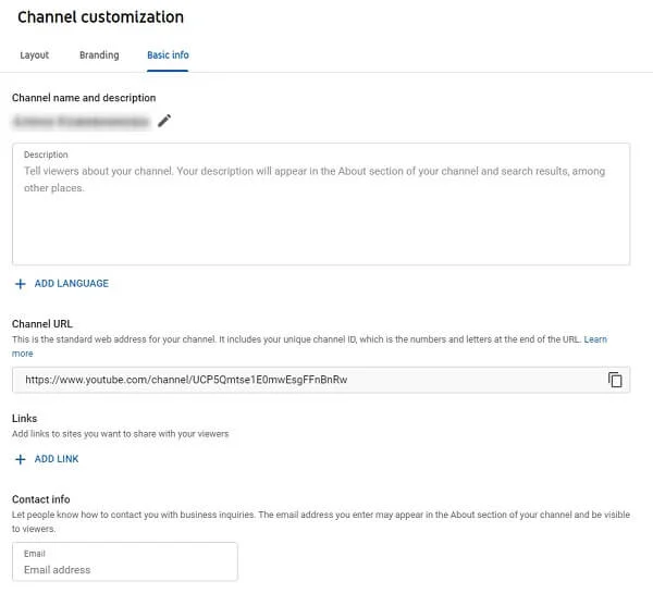 On the “Basic info” tab you will eventually be able to give the channel a custom URL along the lines of “youtube.com/user/marquesbrownlee”. You get this opportunity for a readable address instead of the default gibberish on the 31st day of the channel existence if it has at least 100 subscribers.