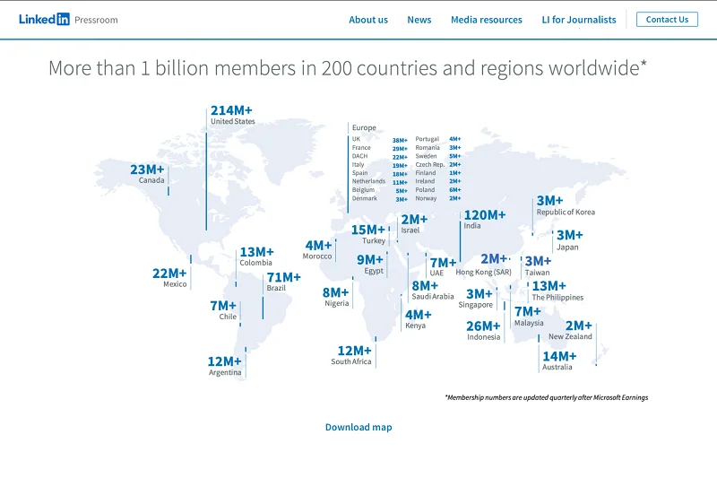 Here’s the thing: LinkedIn has more than one billion users worldwide from about 200 countries and regions. It has more than 67 million companies, 134 thousand schools, and 41 thousand skills listed on it.