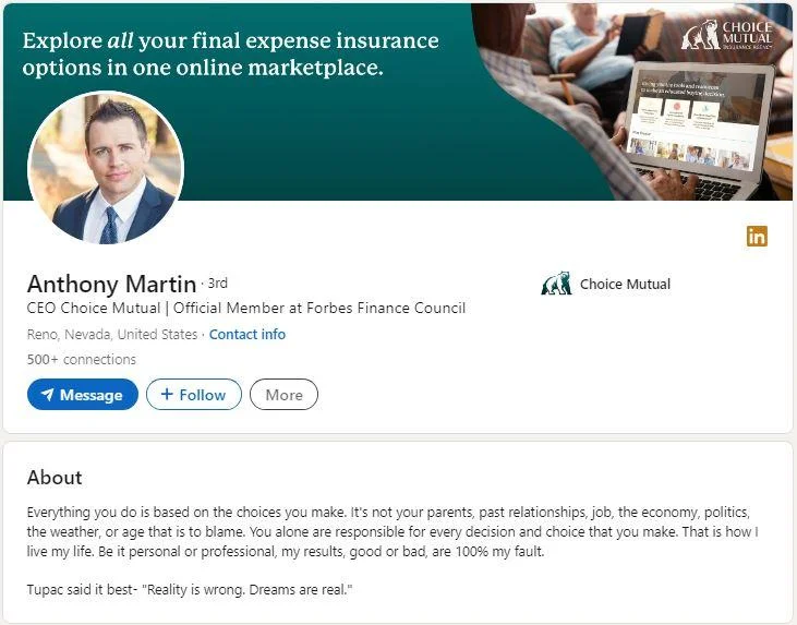 You might have heard of how pictures launch a thousand words. When starting an ecommerce business and setting up your LinkedIn profile, optimize your profile and background images as well. Look at this perfect example: