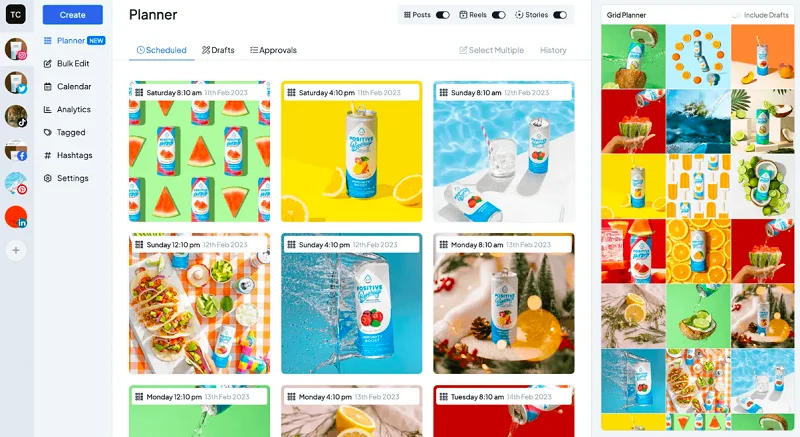 It is a visual planner for Instagram, TikTok, Twitter, Facebook, LinkedIn, and Pinterest feeds.