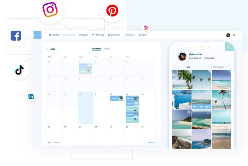 PlannThat is an all-in-one planner, strategy manager, and web designer for content on Instagram, Pinterest, Facebook, TikTok, and LinkedIn.
