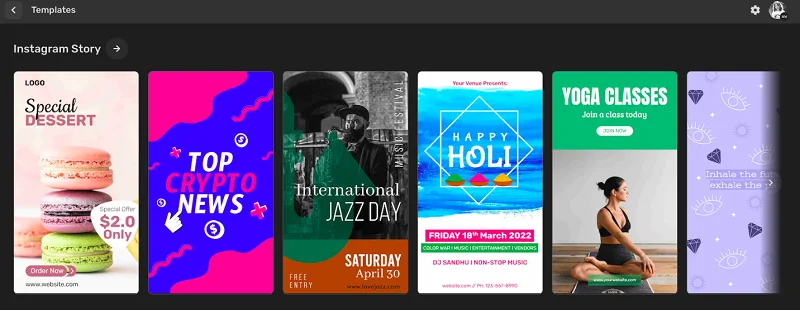 You can also create content right in the app with the aid of tools for editing. Photographs from the free stock photo library are available for use.