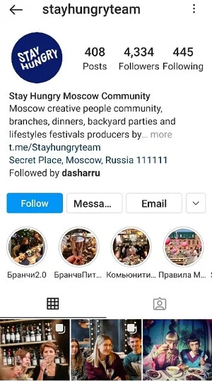 This format is all about creating thematic communities that join people based on their interests. Such communities have a lot of content, but it is all devoted to the same topic. Here you won’t find logos, a company’s name, links to websites, or phone numbers, because it is only typical for corporate accounts. In a thematic community, there is no direct advertising. Nevertheless, it can be integrated into the feed, posts, and stories — so information about your commercial tasks and projects can be shared.