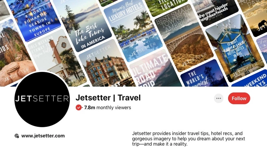 Jetsetter is a boutique travel agency. They publish photo collections on relevant places to visit, travel tips, and links to the posts from their blog.