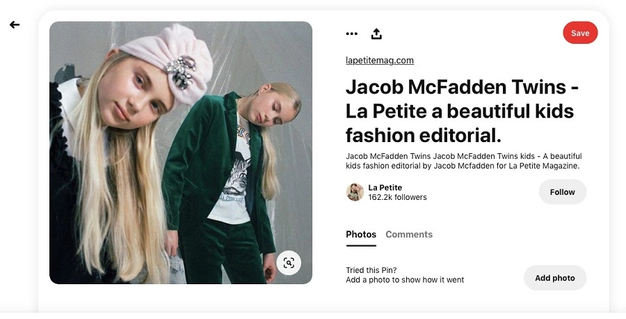 La Petite is a kid fashion magazine. They share links to articles and photo shoots.
