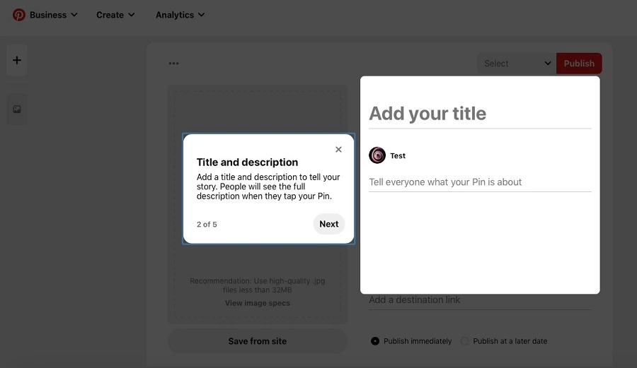 The title and description of content you publish can tell the whole story: users will see a detailed description on the website when they click and open your pin.