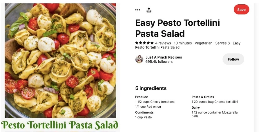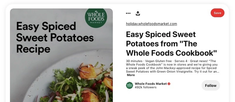 Imagine that the brand has posted a recipe and added the #SweetPotatoes hashtag. In this case, users will find the pin if they search for recipes with this product.