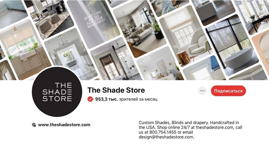 The shade and blind shop called The Shade Store use their Pinterest account to show people how their products fit into the interior and how they create a pleasant atmosphere for the whole apartment.