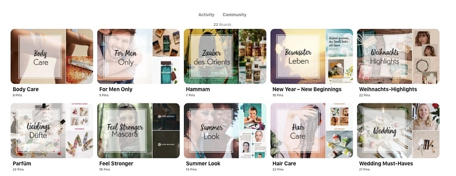 For example, SMM specialists of a cosmetics brand Yves Rocher Deutschland created boards according to users’ frequent requests and uploaded covers according to the corporate style.