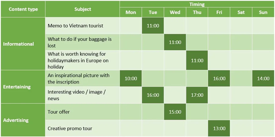 And this is what a content plan for a travel blog may look like (it could be a personal one or on behalf of a company or a travel company).