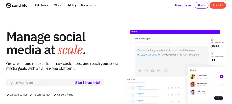 The Sendible team spends much time on development: it runs a blog, makes a podcast, shares free guides, and updates its social media calendar.