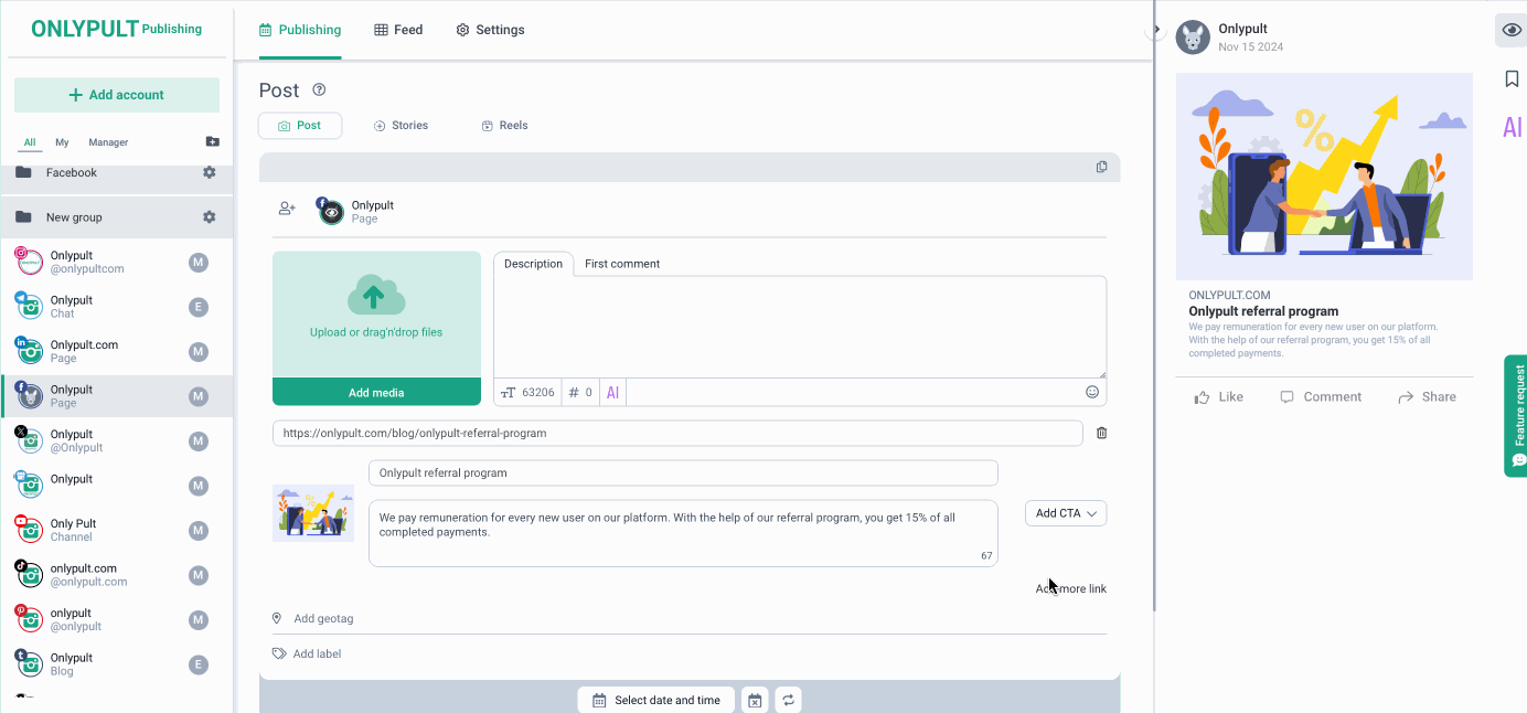 The Publishing tool update is now available on the Onlypult platform.
