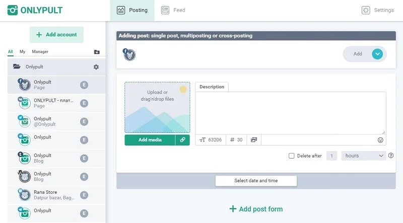Onlypult Publish is an example of an automation tool used for planning and scheduling your Instagram content. There are options to upload files as normal or carousel posts. You will only need to follow a few steps: