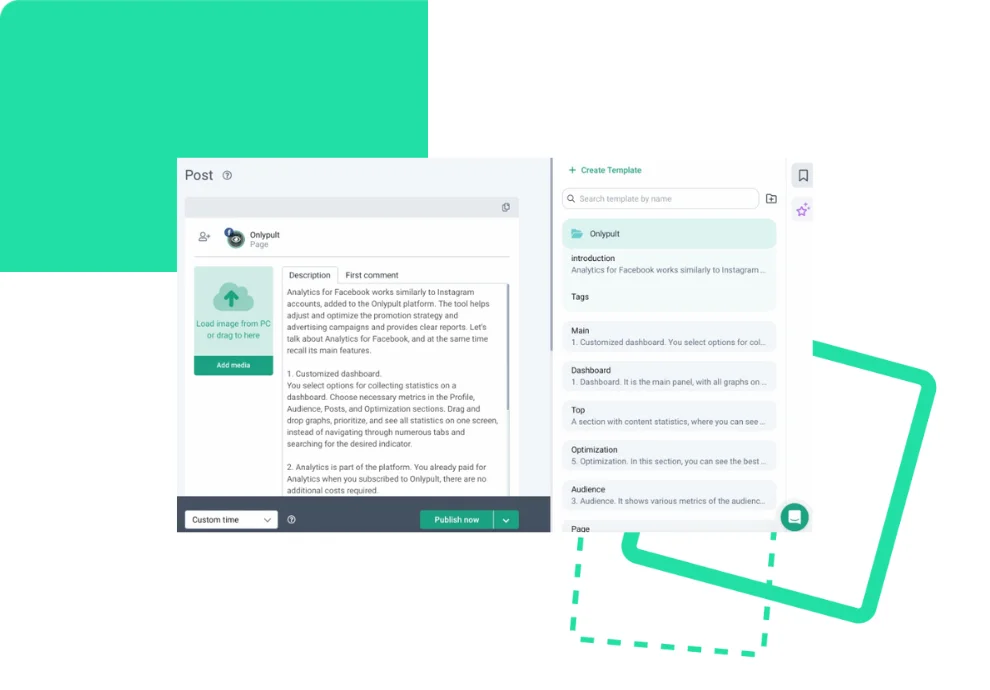 We are happy to Introduce post templates. The main purpose of templates is to optimize your work with text and save you some time. Templates have several functions: Speed up the preparation of posts. You can save text drafts and add hashtags to the first comment; They help conveniently store the results of text generation using AI.