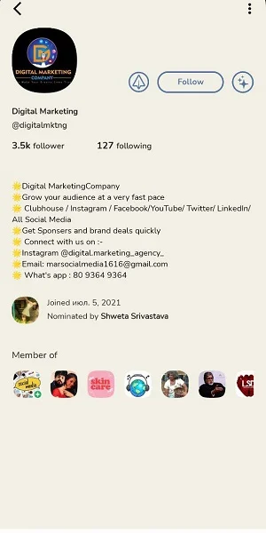 To gain the first 1000 subscribers on Clubhouse, you need not only to be active in the rooms but also to design your profile: an avatar pic, a description, especially the first three lines that are visible when a user clicks on you in the room.