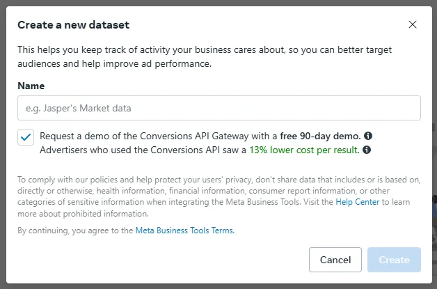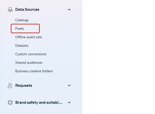 - Click Connect Data Source → Select Web → Choose Facebook Pixel