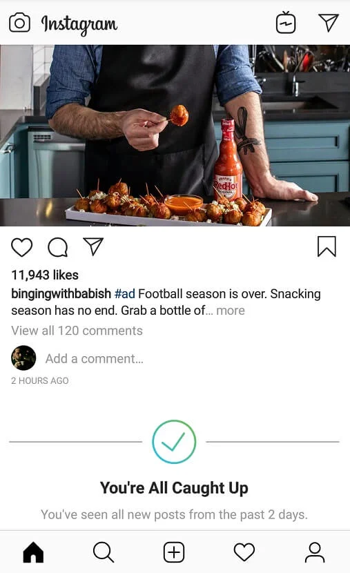 3. Usage. The user who spends 40 minutes a day on Instagram will see more posts (besides the “top” posts), than those who spend 10 minutes a day on Instagram. The second user will only be shown the posts that Instagram ranks as the best.