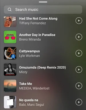 Then, select any track from the built-in music library you like, add it to the video, and post your story.