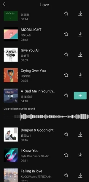 - After pressing it, you will see the tracks. Pick the one you like by pressing the + button:
