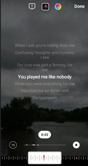 - Press “Done” and tap “Your Story” to post it. Here you are; the catchy story with great music is ready: