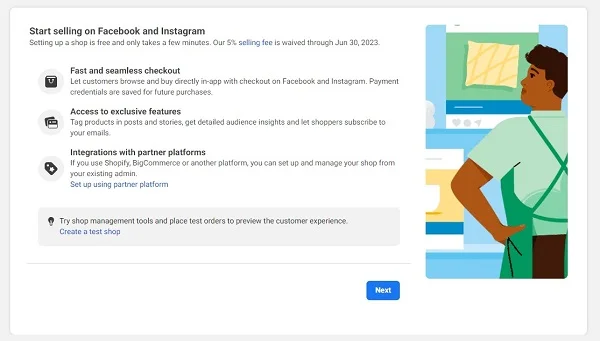To create a shop on a Facebook page, you must be a business page administrator and create an account in Commerce Manager.