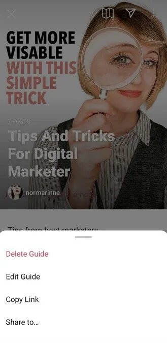 - Click on the three dots in the upper right corner to delete the guide, edit it, copy the link, or share it by posting on other social media and in messengers.