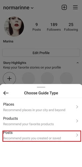 - Select the desired guide type: places, products, or posts. For example, we’ll make a guide with posts.