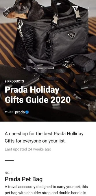 Product guides allow you to collect thematic products in one place. For example, “10 items you need to take when on vacation” or “5 trending gadgets for your home.” You can only add the products from the Instagram store; search by catalog is available.