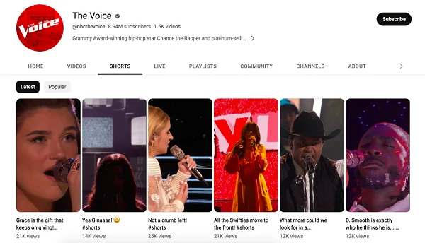 YouTube Short The Voice is also actively used to promote new seasons of the show. For example, they take short interviews with the jury that intrigue fans before the start. At the end of this short video, there is a CTA telling you where and when to watch the episodes.