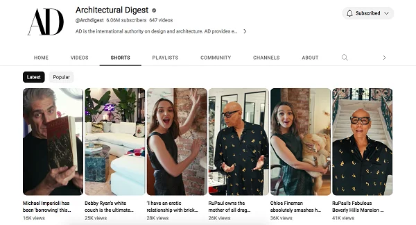 Creators will get inspired by the variety in YouTube Shorts for sure. Shorts also have information about architecture, art, antiques, and besides interviews with homeowners focused on interior design.