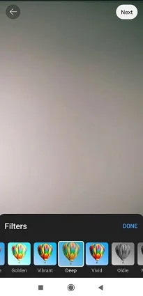 After the recording is complete, click the checkmark to save the video. Then you can refine it by adding an audio track, text, and filters. When finished editing, click the Next button in the upper right corner.