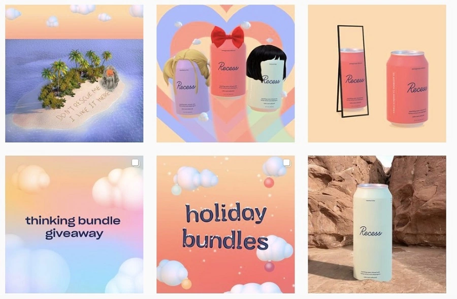 The package of Recess gas water became a character itself: a tin can shows off in front of the mirror, drives around, and meets friends. A user immediately has positive associations with the brand: freedom, fun, and cheerful mood.