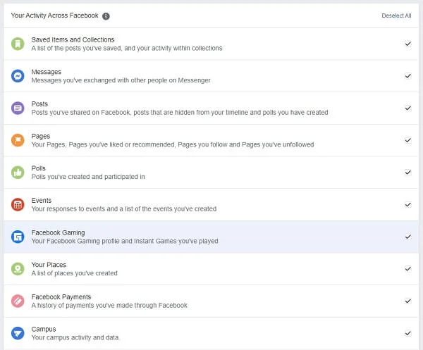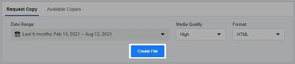 - The network will offer you to export all of your data, but you can choose what you want only (for example, only your photos, videos, messages, or posts);