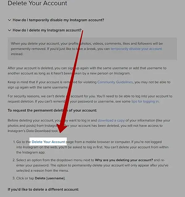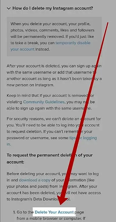 - Click on the “Delete account” link in the instruction that opens and go to the account deletion page;