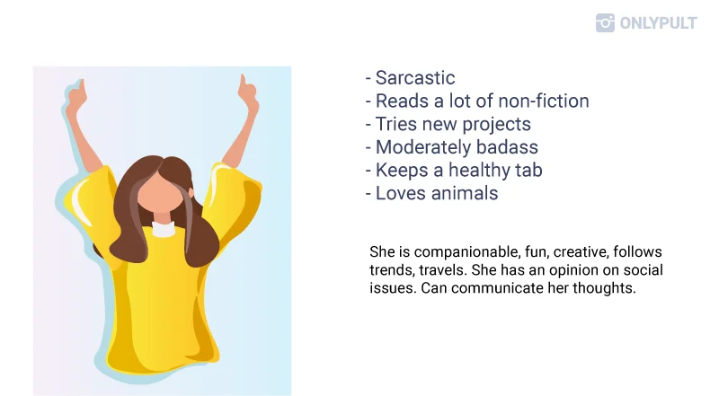 The persona method reminds us of filling out a profile on social networks. You should go through the key points that reveal the character’s portrait and make an impromptu dossier.