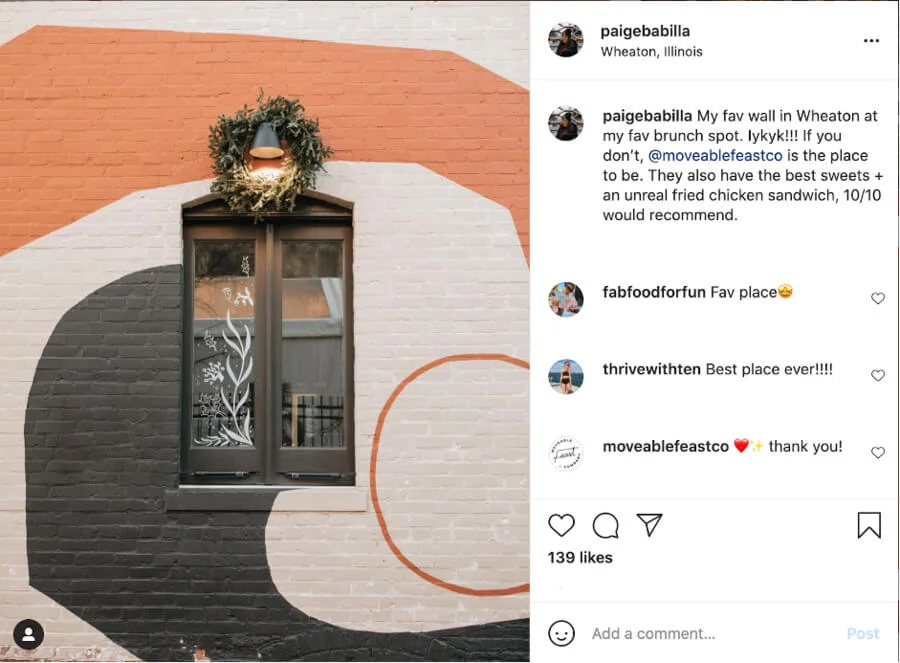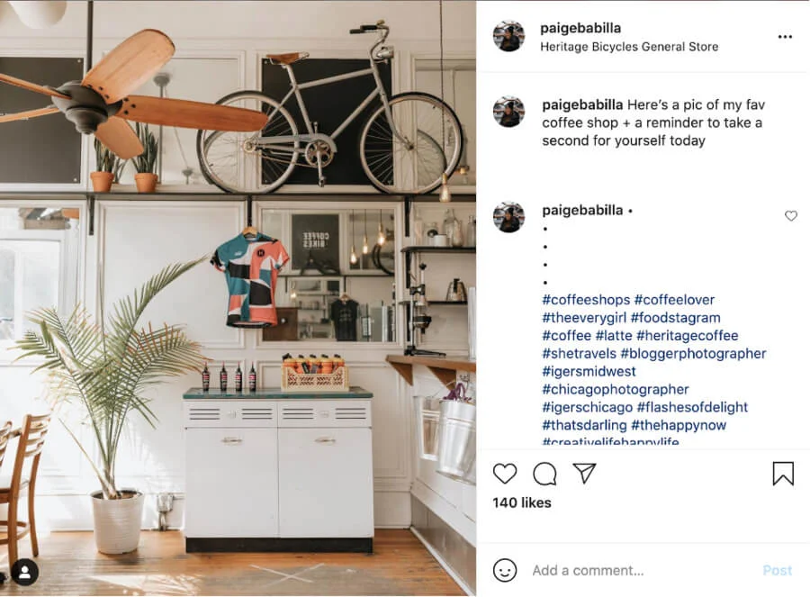 Most of her content focuses on local coffee shops. So, if a Chicago-based photographer doesn’t catch much attention, an account with coffee recommendations sounds more enticing. In the previous sections, we’ve talked about Instagram shoutouts. Here, Paige uses organic shoutouts and builds relationships with local brands.
