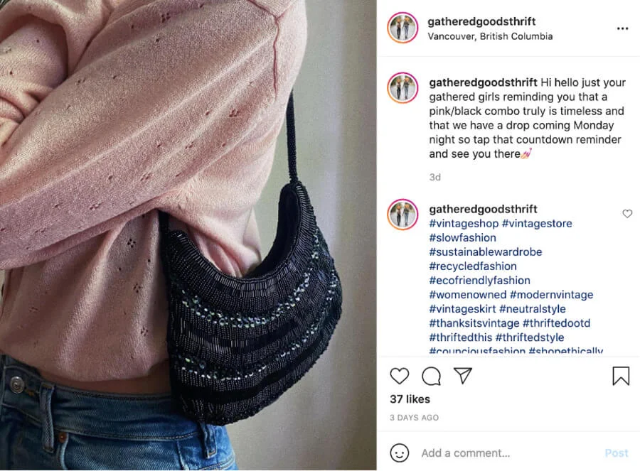 The user from the screenshot above used the platform to set up a store right in their feed. Every day, the two sisters behind this account post new additions to their thrifted clothes and accessory collection. All that is left for potential buyers is to contact them through DMs. As the shop grows, they can also upgrade to get access to Instagram shopping functionality.