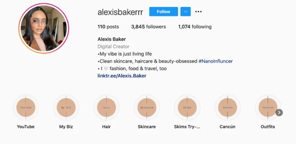 The creator, Alexis Baker, has under 4k followers and proudly calls herself a nano-influencer.