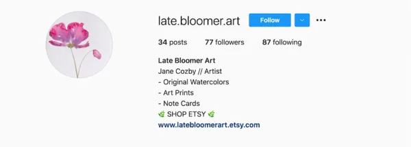 Late Bloomer Art is a small account dedicated to advertising the product they sell - custom art. Even with under 100 followers, they tick all the boxes when it comes to selling anything: