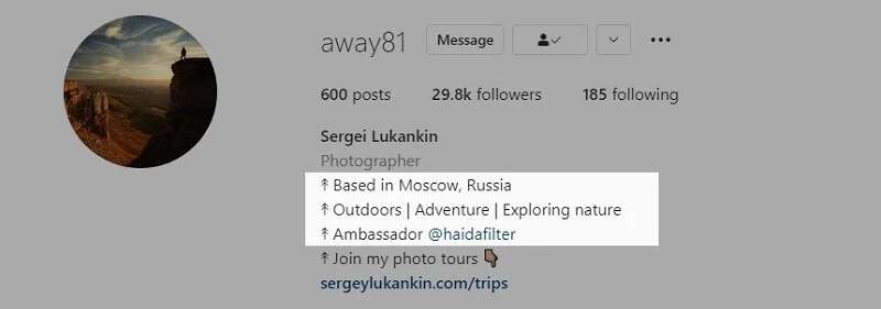 The core moment here: you shouldn’t immediately motivate users to follow you. It can be a slight hint about what you write and what potential value users may find in your Instagram account.