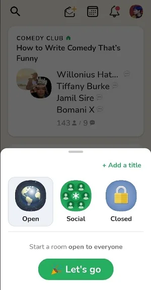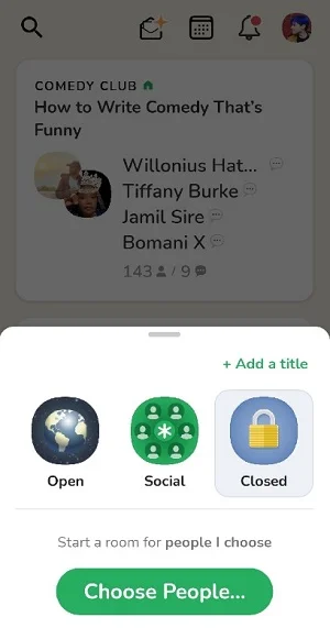 - closed — it is like an audio version of Zoom. You can chat with one person or several people. You can then open a closed group so that it becomes visible to everyone.