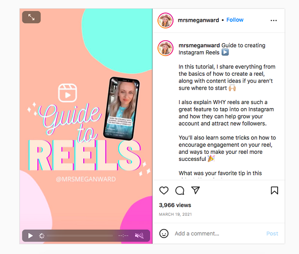 Instagram users are used to the fact that the content posted on the platform focuses on education — tips, recommendations, and personal experience. Users are more willing to save and share posts with helpful information. The same trend is in Reels.