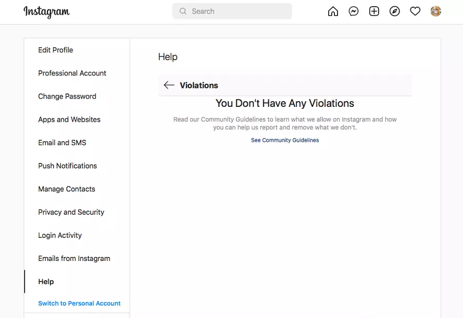 If there are no violations, you will see an inscription and a link to the Instagram rules: