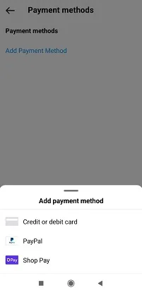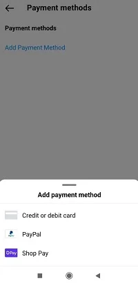 They can choose from a credit or debit card, PayPal, or Shop Pay. To select the payment method, go to the Orders and Payments section and press the Payment Methods button.