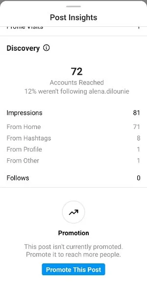 You can analyze the information like this: see which posts get more likes, which less, which photos people like more, which less, which formats they like most, for example, photos, videos. Of course, you can also compare any other indicators, for example, profile visits. That is the number of people who saw your post on the feed or the Recommendations section and then visited the main page of your profile.