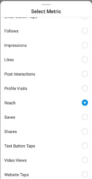 This option shows you the information about your publications and stories. The posts with the best reach are shown here. And, of course, IGTV videos as well.