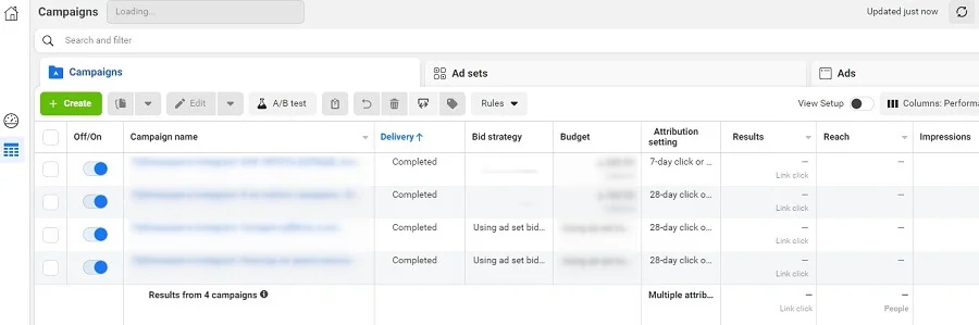 Here you can see advertising campaigns and your posts. But, most importantly, you can view the ad statistics. There is information on the audience that came due to the promotion: coverage, frequency, reactions to the posts, clicks on a link, comments.