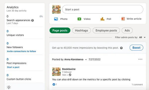Make sure you fill in all the profile information. Ensure people can read all vital brand information immediately. Users shall not guess what the company’s specialization is and where it is located. LinkedIn asks relevant questions when you create a page — answer them.