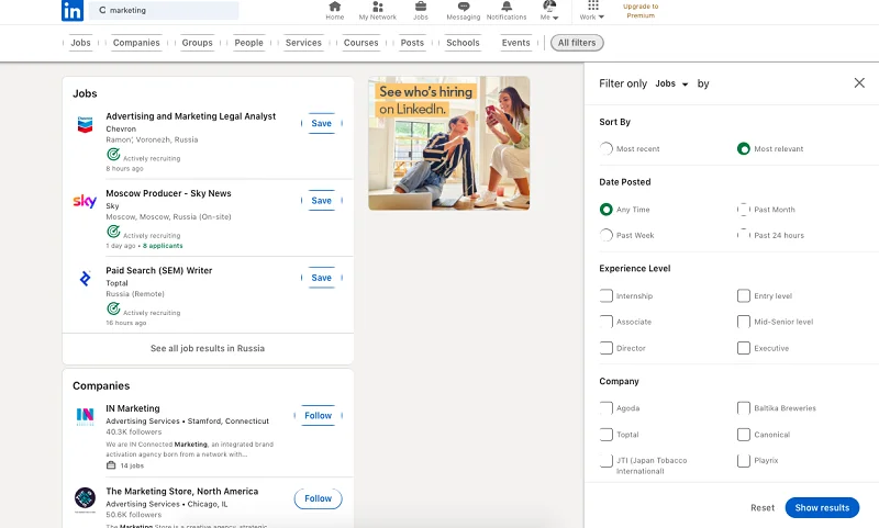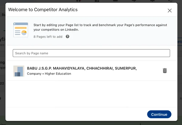 You can also manually analyze competitor pages: enter the topic of interest in the search and select the pages. It will allow you to study in more detail what companies are present on LinkedIn and what content they publish.